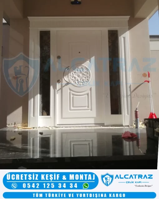 Villa Giriş Kapısı Kilit sistemlerinde son teknoloji akıllı kilit sistemlerine uyumlu üretilerek alarmlı kilit seçenekleri parmak izi çelik kapı kilidi, göz tanıma sistemine sahip kapı kilidi, telefon ile kontrol edilebilen çelik kapı kilit sistemleri ile güçlendirilebilmektedir.